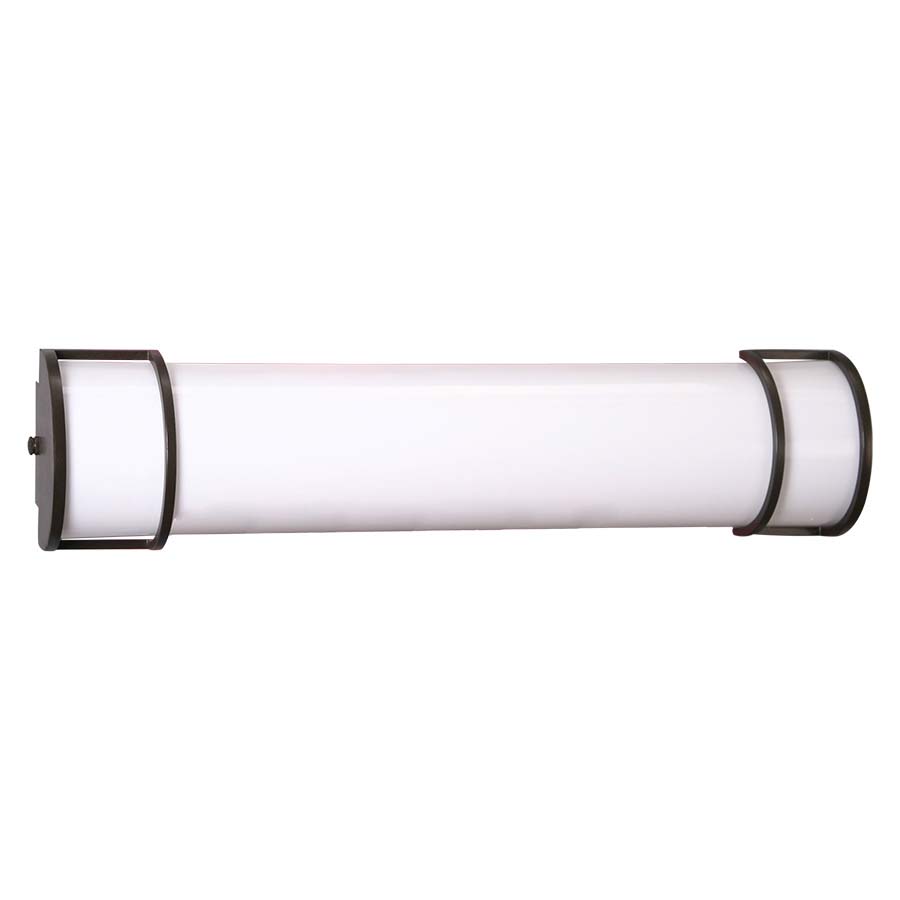25" LED Ready Vanity Fixture with Matte Bronze end caps with Frosted White Acrylic Diffuser. Recommend two 7 watt T8 LED linear Non-Shunted bulb (bulb not included, fixture will not work with fluorescent bulbs)