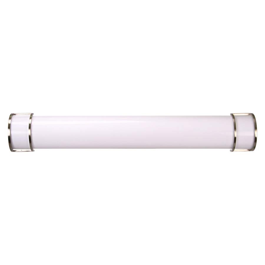 37" LED Ready Vanity Fixture with Brushed Nickel end caps with Frosted White Acrylic Diffuser. Recommend two 12 watt T8 LED linear Non-Shunted bulb (bulb not included, fixture will not work with fluorescent bulbs)