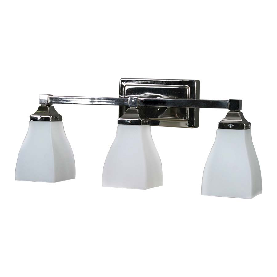 24" Polished Nickel Vanity Fixture, with three Frosted White Glass Diffusers. Recommend three 800 lumen LED bulbs.