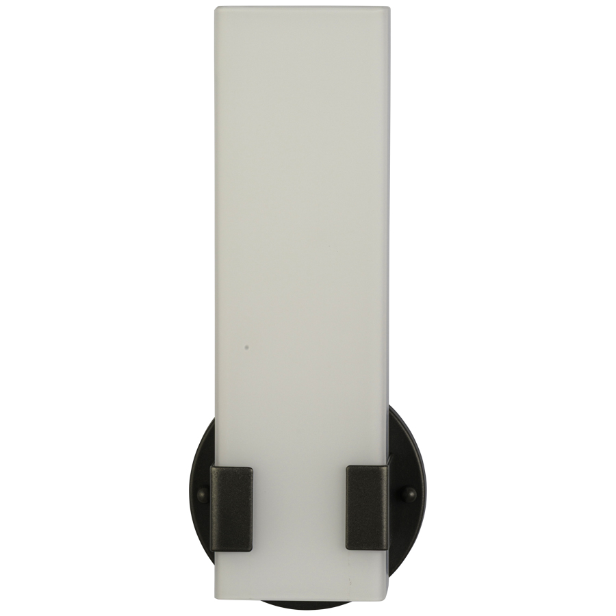 11.625" Powder Coat to match Chemetal #354 Alu Dark Wall Sconce with Rectangular Opal Matte Glass Diffuser, GU24 socket, direct wired. Recommend one 6 watt 525 lumen LED PL style bulb with GU24 base.