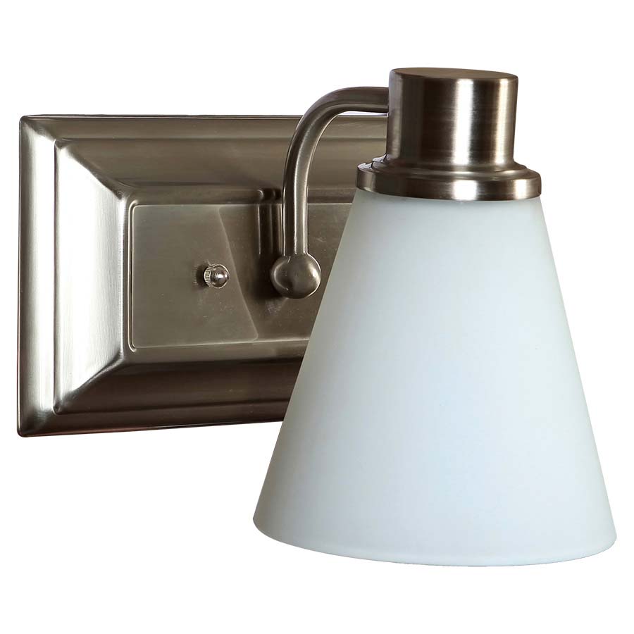 Looking for a stylish and functional lighting solution for your bathroom? Our Brushed Nickel Vanity with cone-shaped White Frosted Glass diffuser is the answer.