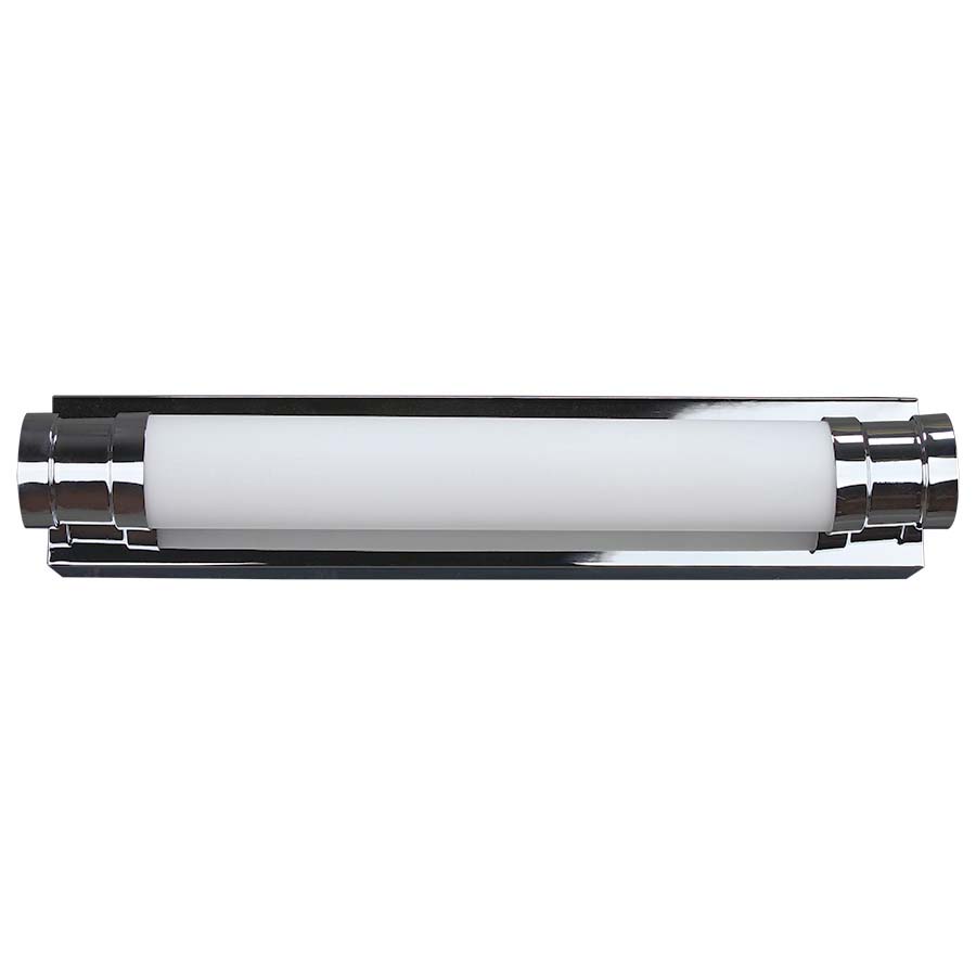26" LED Ready Polished Chrome Vanity Fixture, direct wired, Frosted White Glass Diffuser. Recommend one 7 watt T8 LED linear Non-Shunted bulb (bulb not included, fixture will not work with a fluorescent bulb)