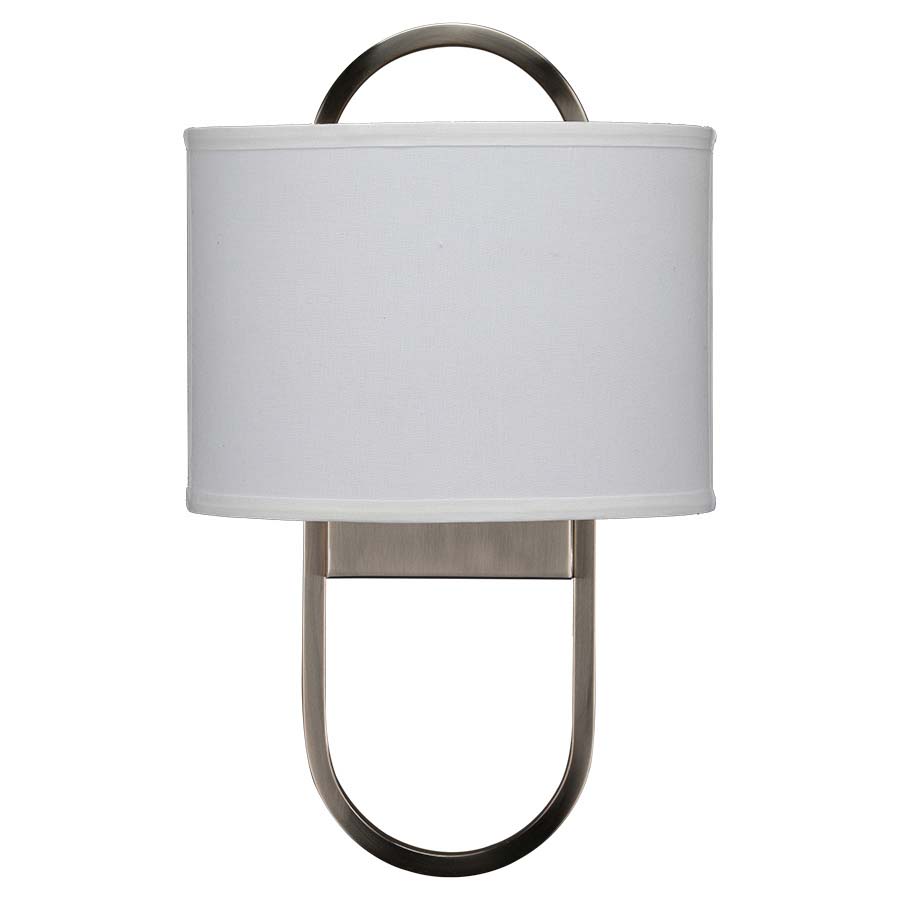 Enhance the ambiance of any room with our 18" Brushed Nickel Wall Sconce, featuring a sleek white linen hardback shade and a convenient on/off rocker switch at the backplate.