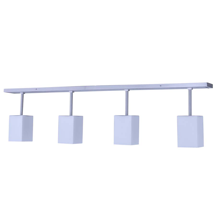 12"H Brushed Nickel Pendant, four medium base sockets, direct wired, with four White Glass Shades. Recommend four 800 lumen LED bulbs.