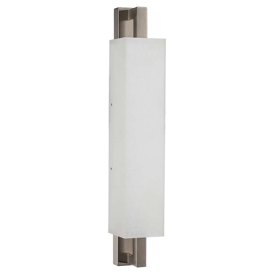 24" Brushed Nickel Integrated LED Wall Sconce, 15 watt LED, 1500 lumens, 3000K, 90CRI, 120V, direct wired, White Linen Silk Screen Acrylic Diffuser.