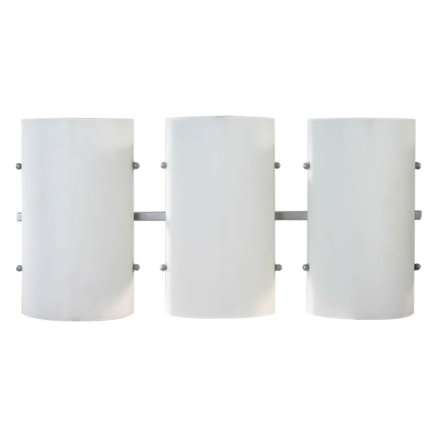 22" Vanity Fixture, shown in Stainless Steel, with Frosted White Glass Diffusers. Recommend three 800 lumen LED bulbs.