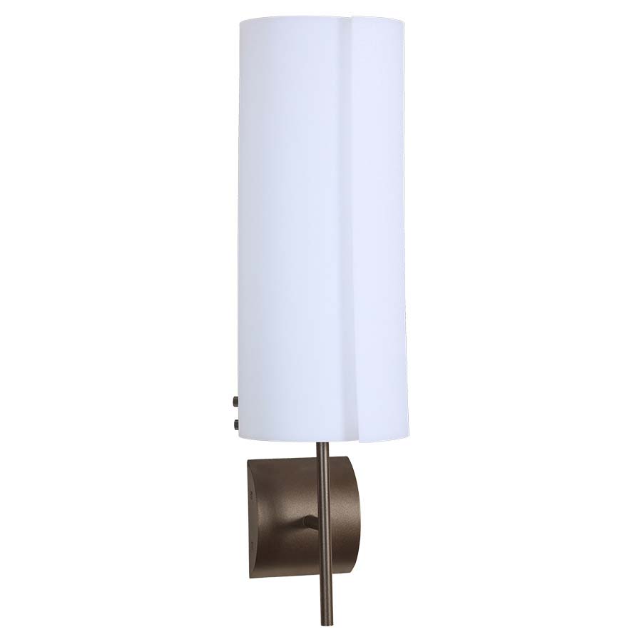 23"H Wall Sconce shown in Naples Bronze, GU24 Socket, direct wired with White Acrylic wrap around diffuser. Recommend one 6 watt LED PL style bulb. 6.5"W, 23"H, 7"D
