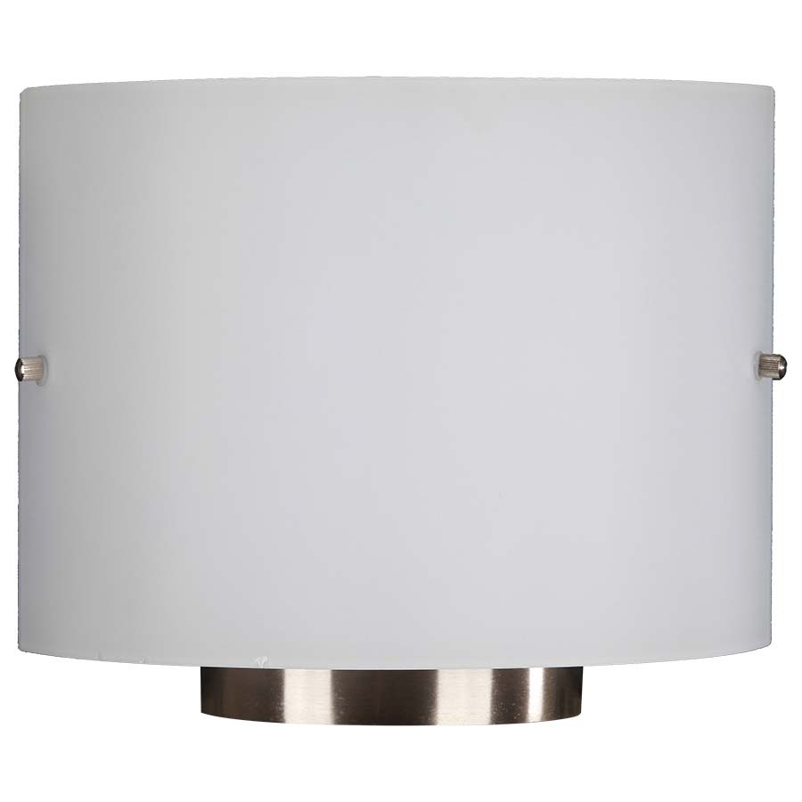 8.5" Brushed Nickel Wall Sconce, medium base socket, direct wired. With frosted white glass diffuser. Recommend one 800 lumen LED bulb. 10"W x 8.5"H x 4"D
