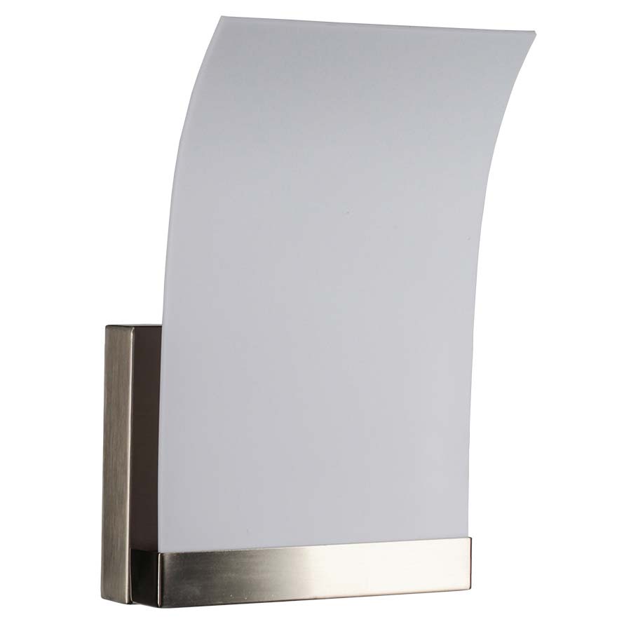 12.25" Brushed Nickel LED Wall Sconce, 8 watt integrated LED, 800 Lumens, 3000K, direct wired, Frosted White Acrylic diffuser, 12.25"H, 8.25"W, 3.75"D. Corridor Wall Sconce