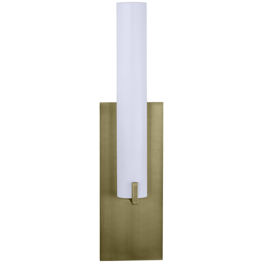 24"H Antique Brass Wall Sconce, GU24 socket, direct wired, White Frosted Acrylic Diffuser, recommend one 8 watt LED PL style bulb, 6"W x 24"H x 4"D