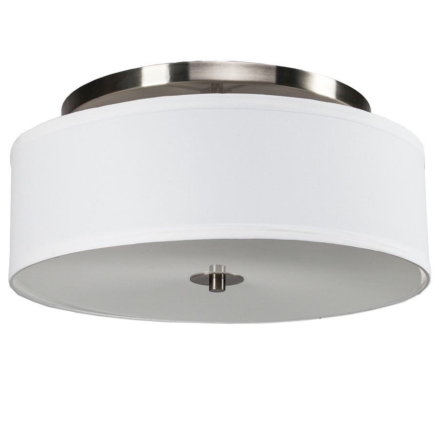 16" Diameter Brushed Nickel LED Pendant, direct wired, 24 watt integrated LED disk, 2400 lumens, 3000K, 90CRI, with 16x16x5 White Linen Hardback shade with frosted white acrylic bottom diffuser. 7.5" OAH