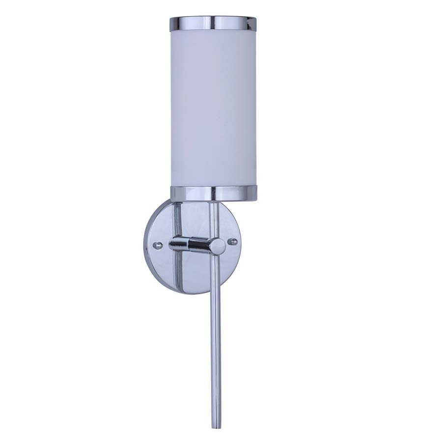 18" Polished Chrome Wall Sconce, GU24 socket, direct wired, with Frosted White Acrylic Shade. Recommend one 6 watt LED Quad PL style bulb with GU24 Base.