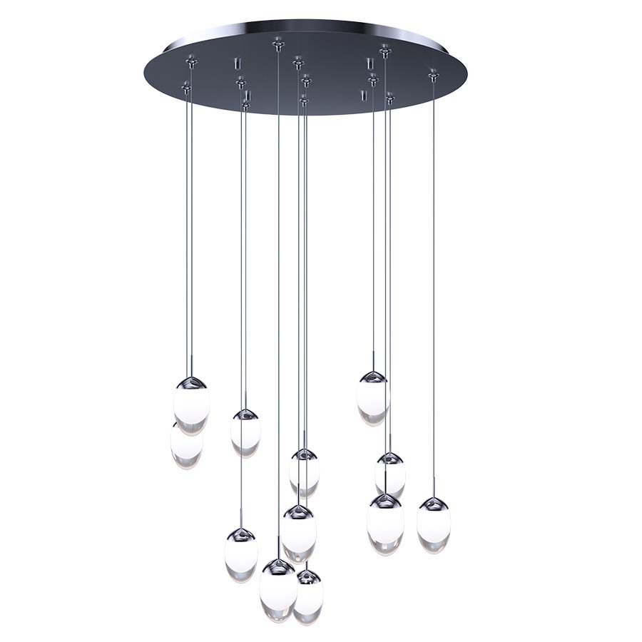 Polished Chrome LED 12-Light Pendant, integrated 2550 lumens LED, Twelve 3 watts, 3000K, 80 CRI, direct wired, adjustable height to 59", Clear Acrylic Diffuser