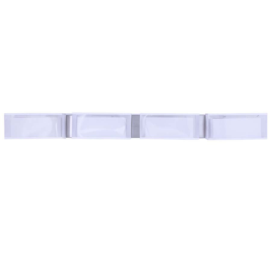 50" Brushed Nickel 4-Light Vanity, four medium skts, direct wired,with laminated white linen inner shade with sheer organza outer shade, bottom white frosted acrylic diffuser and perforated top metal diffuser. Recommend four 1100 lumen LED bulbs.