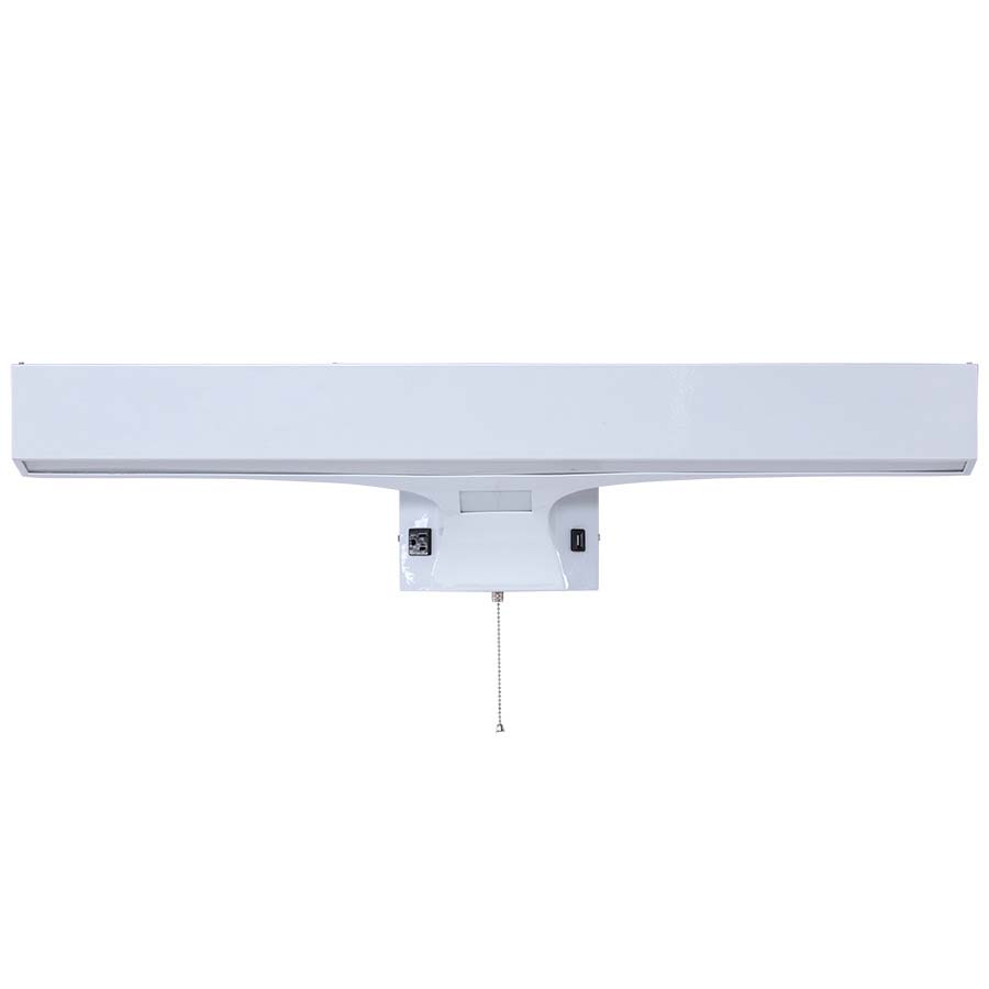36" Pearl White Vanity or Overbed fixture, one set T5 sockets and one GU24 socket, direct wired, w/3-way pull chain switch, one conv outlet, one USB port, Frosted White Acrylic Diffuser. Recommend one 21 watt T5 bulb and one 13 watt CFL bulb w/GU24 base.