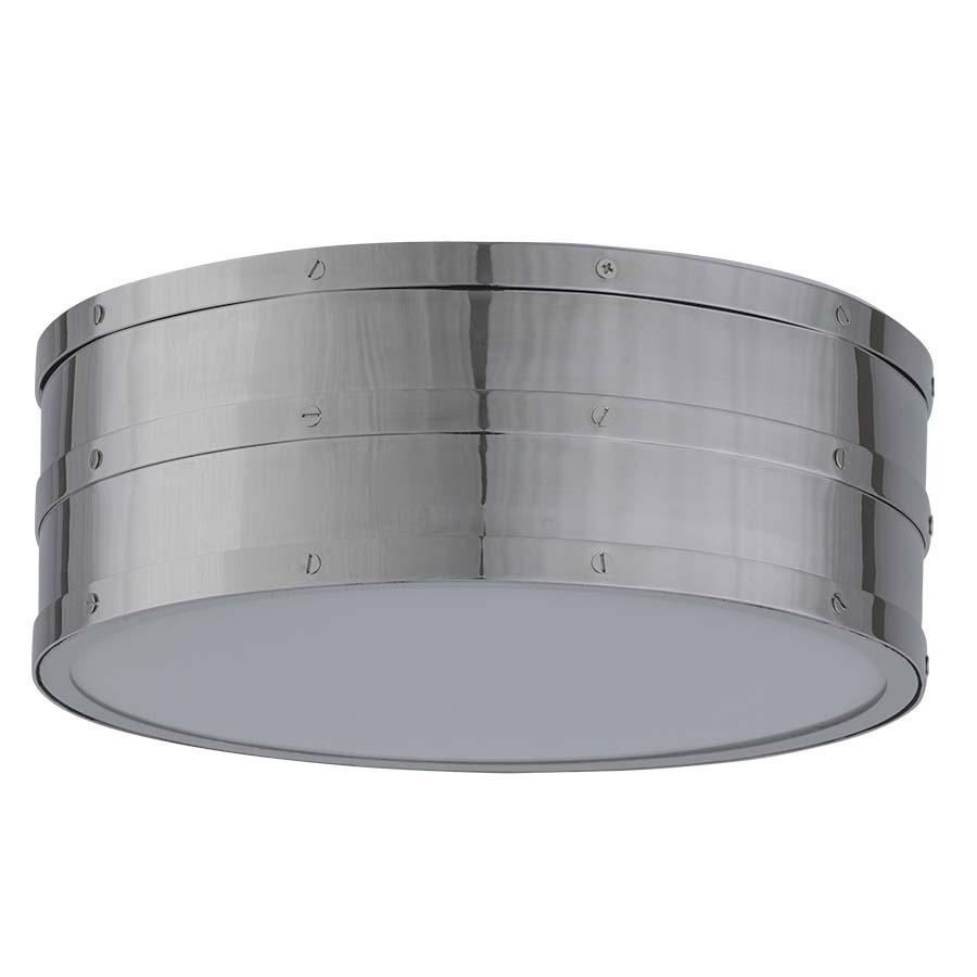 12.25" diameter Polished Nickel Integrated LED Ceiling Fixture, 9 watt LED, 3000K, 720 lumens, 90CRI, direct wired, White Glass Diffuser, with extra clear lacquer coating over all metal parts
