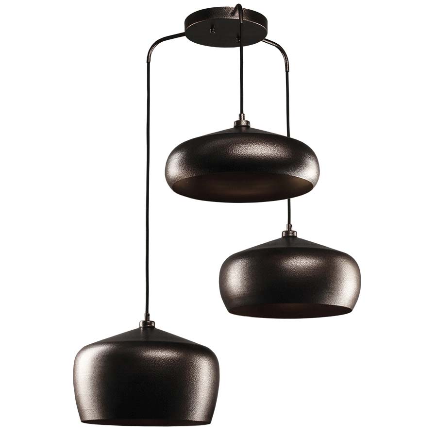 Three Light LED Pendant, shown in Gold Vein Exterior and Polished Gold interior, three 8 watt AC LED modules, 1900 total lumens, 3000K, direct wired, 38"H