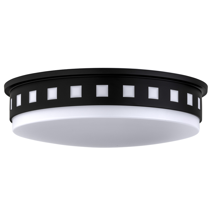 18" diameter Powder Coat to match Tiger Drylac Smooth Matte Black 09/80130 Ceiling Fixture, three medium base sockets, direct wired, with Matte White Frosted Acrylic Diffuser, recommend three 800 lumen LED bulbs
