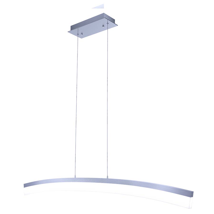 48"W Arched Brushed Aluminum Integrated LED Pendant, 20 watt, 2000 lumen, 3000K, 90CRI, variable height up to 59", with White Frosted Acrylic Diffuser.