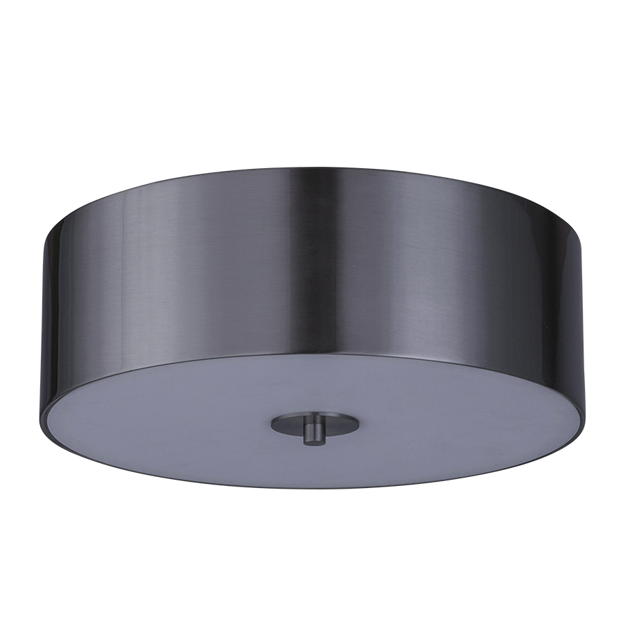 12" Round BRUSHED NICKEL Ceiling Fixture, two GU24 sockets, direct wired, with White Frosted acrylic diffuser. Recommend two 1100 lumen LED bulbs with GU24 base. 12"W, 4"D.