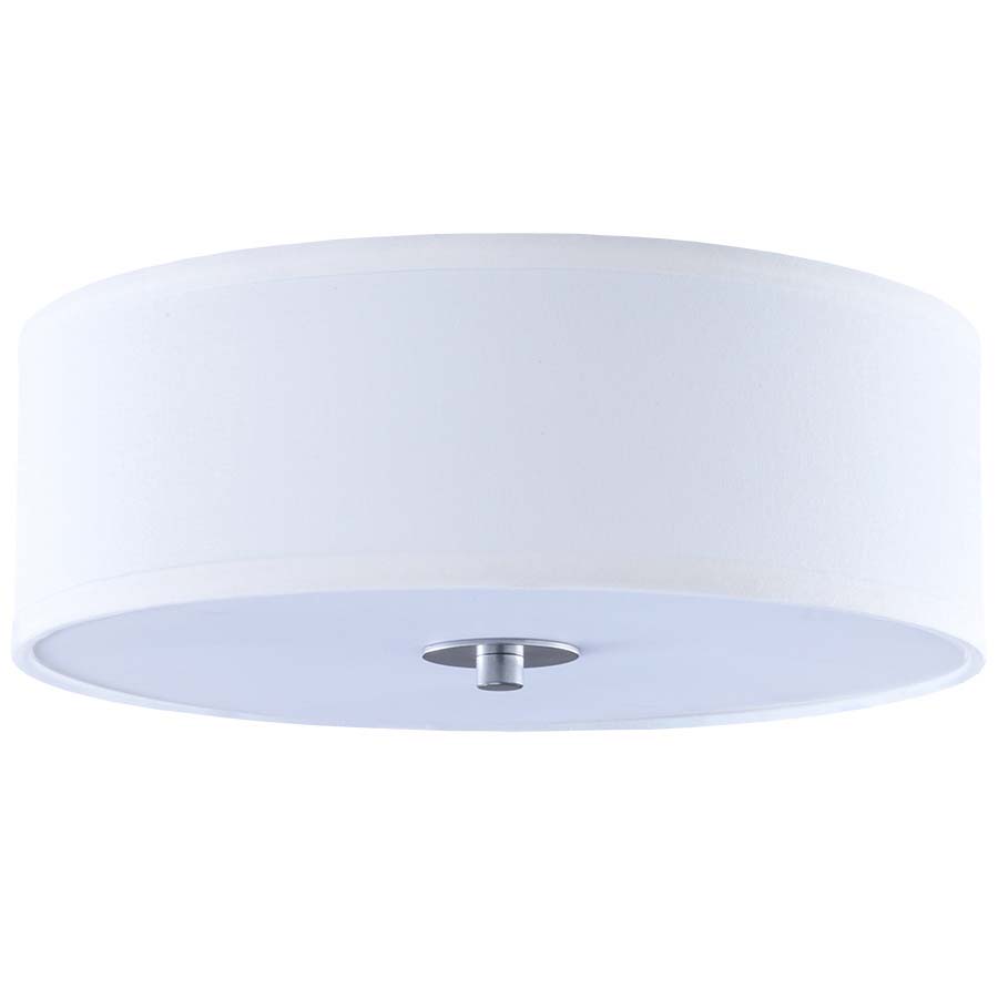 14" Round White Linen Ceiling Fixture with Brushed Nickel accents, two GU24 sockets, direct wired, with White Frosted acrylic bottom diffuser. Recommend two 1100 lumen LED bulbs with GU24 base. 14"W, 4.5"H