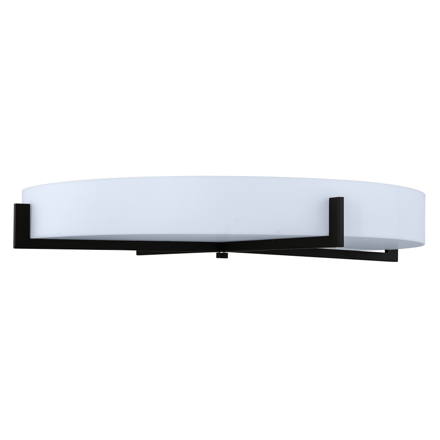 36" diameter x 6"H Ceiling Fixture with Matte Black Accents, six GU24 sockets, direct wired, with 33.5"x33.5"x4" Cream Linen Hardback Shade with White Frosted Acrylic bottom diffuser. Recommend six 1100 lumen LED bulbs with GU24 base.