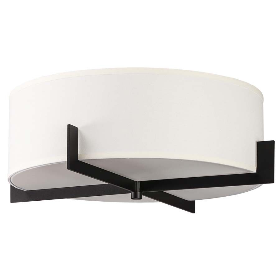 18" Ceiling Fixture with Matte Black Accents, three GU24 sockets, direct wired, with 15.5x15.5x4 Cream Linen Hardback shade with single fold trim and frosted white acrylic bottom diffuser. Recommend three 1100 lumen LED bulbs with GU24 base. 18"W, 6"H