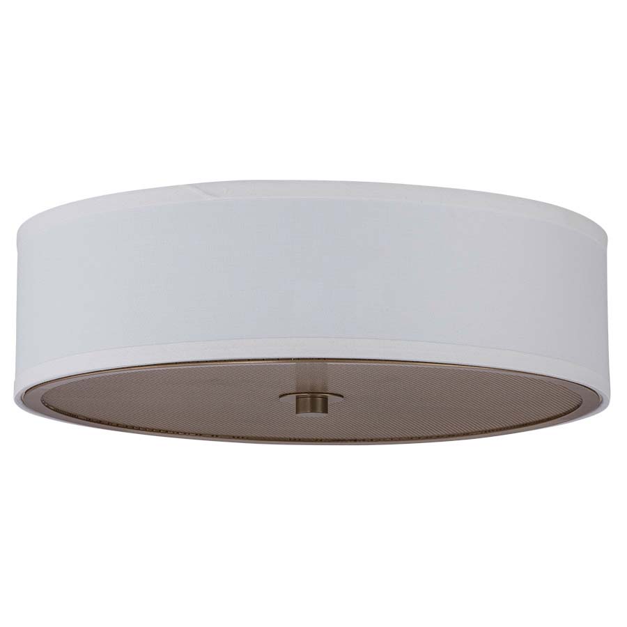 A perforated metal bottom & cream linen hardback shade are sophisticated touches in this round flush mount ceiling sconce by Arkansas Lighting. Shop now.
