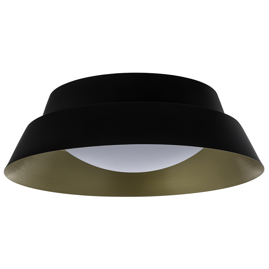 17" Espresso Ceiling Fixture with Sungold Interior, two medium base sockets, direct wired, with Opal Matte Glass Diffuser. Recommend two 1100 lumen LED bulbs. 17"W, 5"H