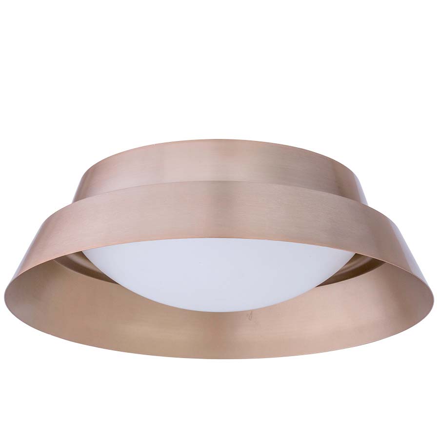 17" Oiled Bronze Aluminum Ceiling Fixture, Two GU24 sockets, direct wired, with Opal Matte Glass Diffuser. Recommend two 1100 lumen LED bulbs with GU24 base. 17"W, 5"H