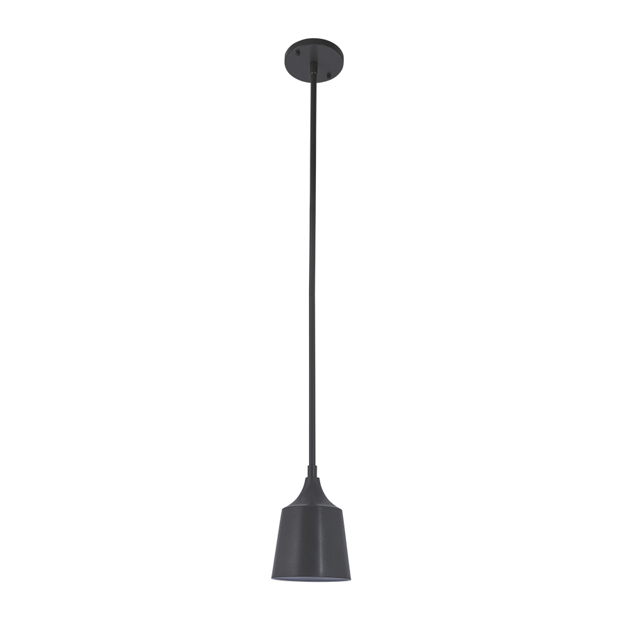 5" diameter Stainless Steel Powder Coated Single Light Pendant with Painted white interior, one GU24 socket, direct wired, three down rod pieces for field adjustable, Recommend 1100 lumen LED bulb with GU24 base. Adjustable up to 39"OAH.