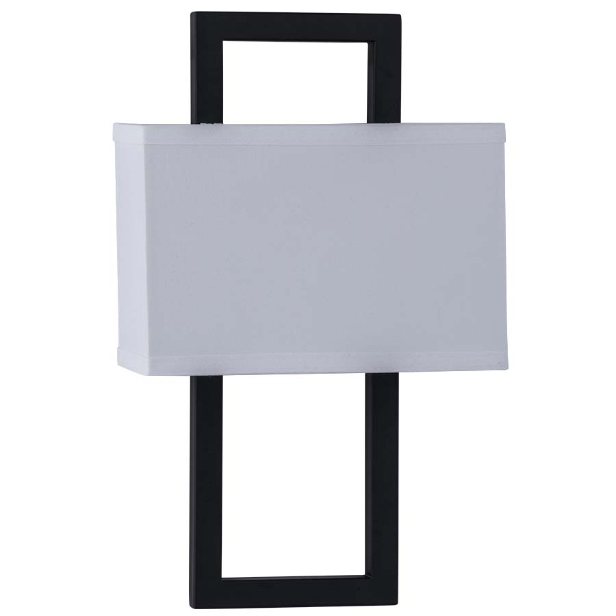 15.5"H Matte Black Wall Sconce, two GU24 sockets, Direct Wired, With 4"x9.5"x6.25" White Linen Shade. Recommend two 800 lumen LED bulbs with GU24 base.