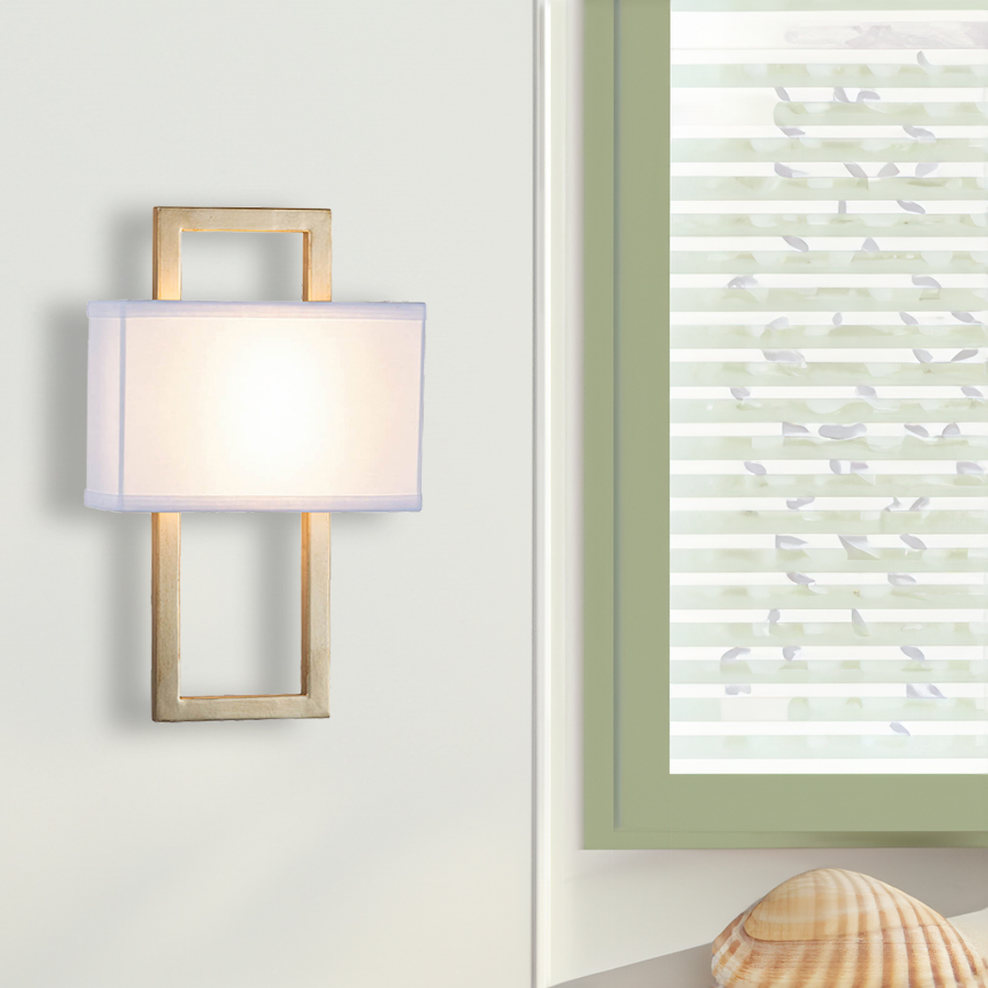 15.5"H Antique Silver Integrated LED Wall Sconce, two 15 watt AC LED, 2400 lumens, 3000K, 90CRI, Direct Wired, With 4"x9.5"x6.25" White Linen Shade.