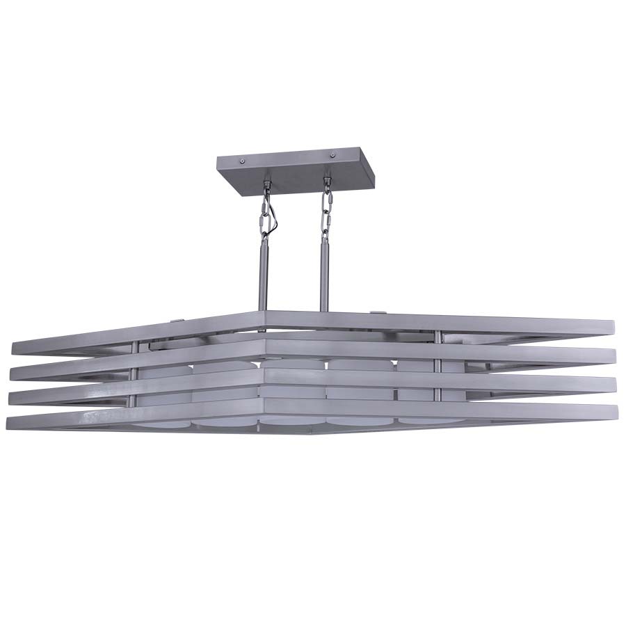 44.5"W x 13" D Brushed Nickel Pendant, Five E12 base sockets, Direct Wire, Cased Opal Glass with five 5 watt candelabra bulbs included. Adjustable Down Rod 6" to 30".
