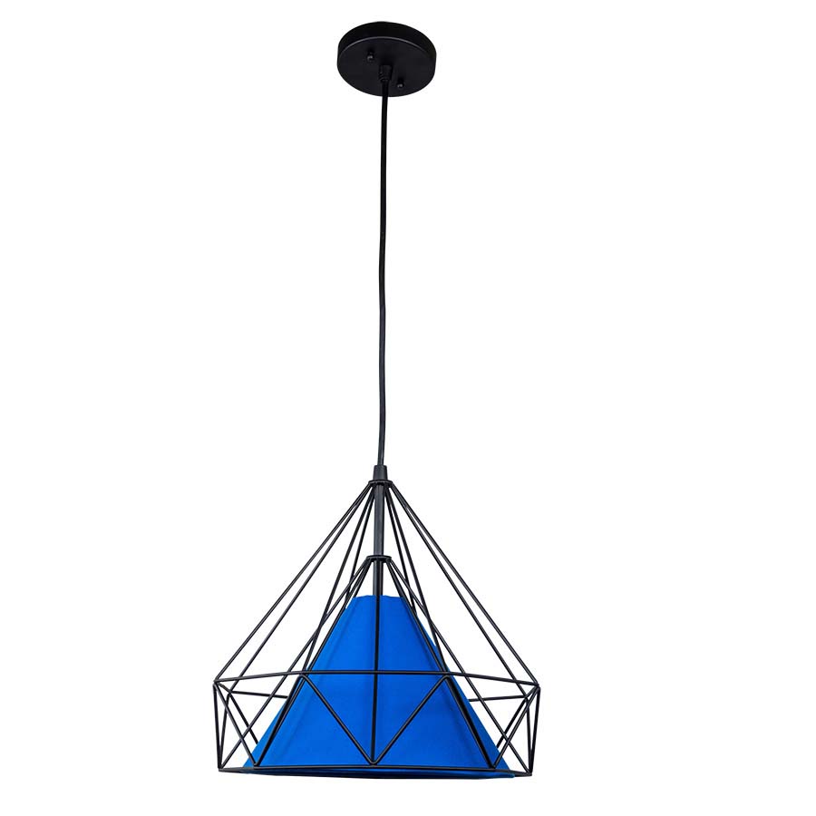 15"W Painted Black Pendant, with Champion Cobalt Fabric Shade, medium base socket, 20" Black Cord, Direct Wired. 35"H. Recommend 1100 lumen LED bulb.