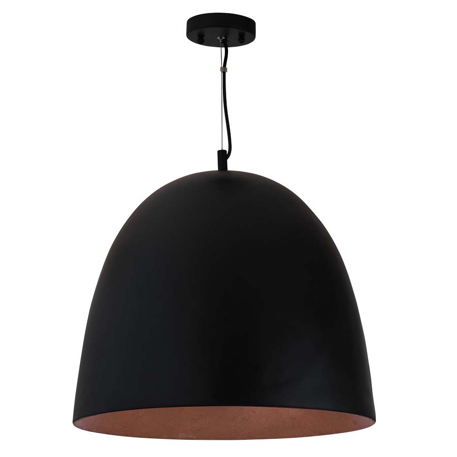 19.5" diameter x 59"OAH Resin Pendant, one medium base socket, with Painted Black Shade and Painted Gold Inside. Recommend 1100 lumen LED bulb