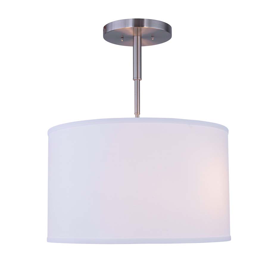 24"OAH Brushed Nickel Pendant, with 20x20x12 White Linen Shade, Two medium base sockets, Direct Wired, with Frosted White Acrylic Bottom Diffuser. Recommend two 1100 lumens LED bulbs.