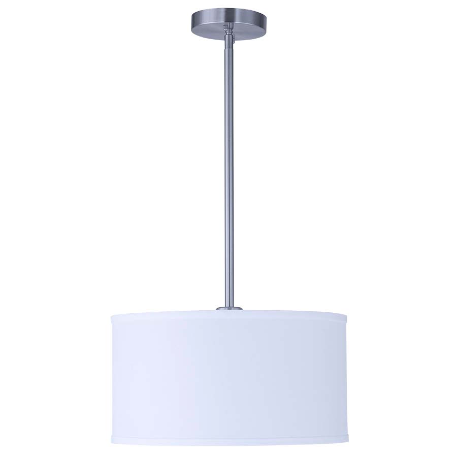 28"H Brushed Nickel Pendant, one medium base socket, direct wired, with 15x15x18 White Linen Hardback Shade and White Frosted Acrylic Bottom Diffuser. Recommend 1100 lumen LED bulb.