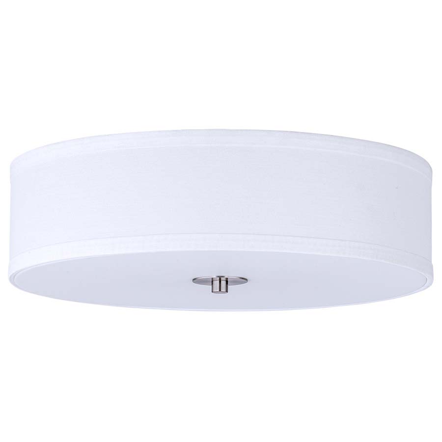 15" Round White Linen Ceiling Fixture with Brushed Nickel accents, two medium base sockets, direct wired, with White Frosted acrylic bottom diffuser. Recommend two 1100 lumen LED bulbs. 15"W, 4.5"D