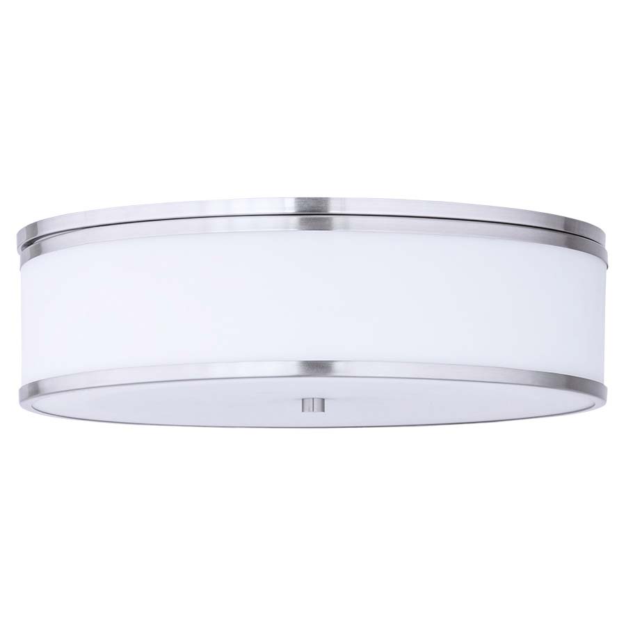 20-1/8" Ceiling Fixture with Brushed Nickel Steel Trim, White Frosted Acrylic Outer and Inner Shades, three medium base sockets, Direct Wired, with White Frosted Acrylic Bottom Diffuser. Recommend three 800 lumen LED bulbs.