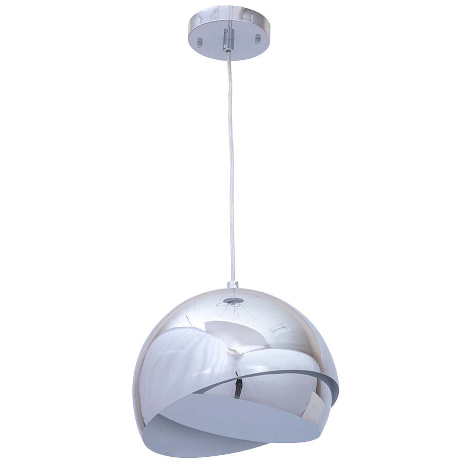 63.25"H Polished Chrome Pendant with white interior, one medium base socket, direct wired,Silver Cord Hung. Recommend 6 watt LED G25 Globe bulb. (bulb not included)