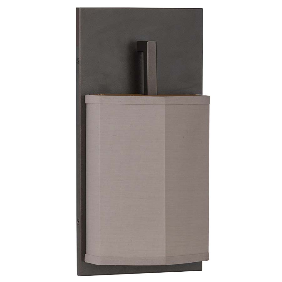 This ADA wall sconce by Arkansas Lighting adds understated elegance to a space. The modern wall sconce is styled in bronze with a beige hardback shade.