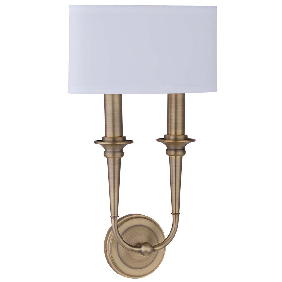 Classic style meets modern functionality in Arkansas Lighting’s candelabra wall sconce. This ADA wall sconce has an antique brass finish and a linen shade.