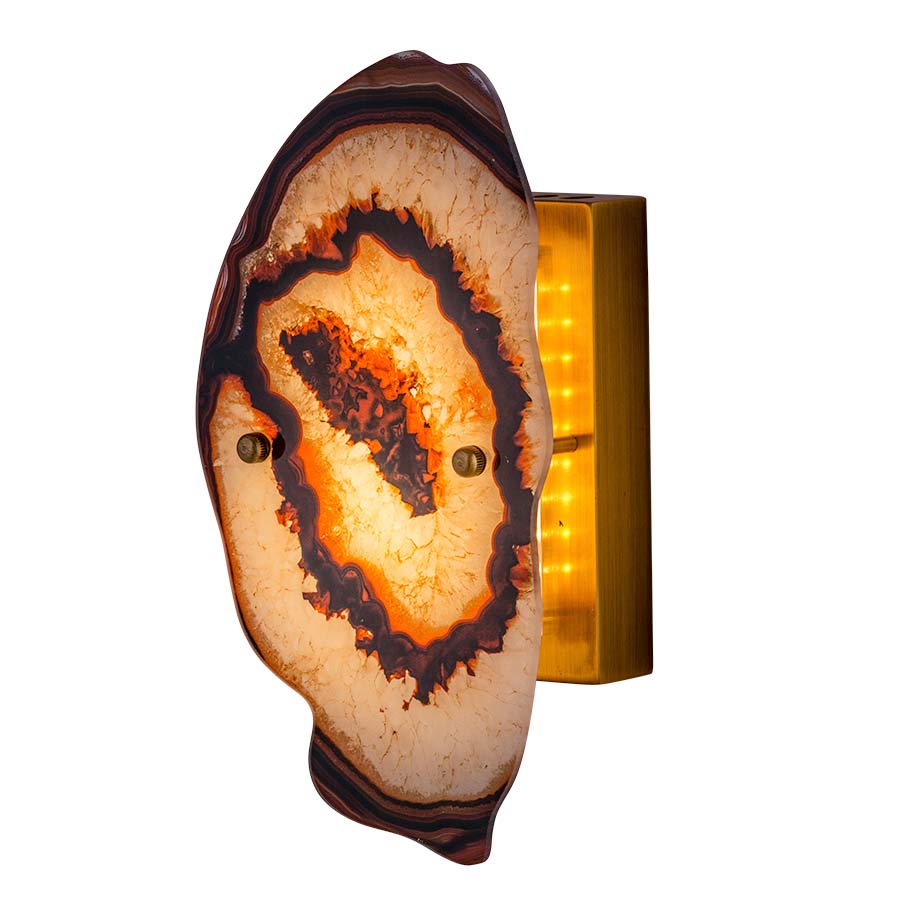 10-5/8"H Polished Brass and Agate Glass Integrated LED Wall Sconce, 6 watt, 3000K, 480 lumen, 85CRI, direct wired, 6.25"W, 10-5/8"H, 3.5"D
