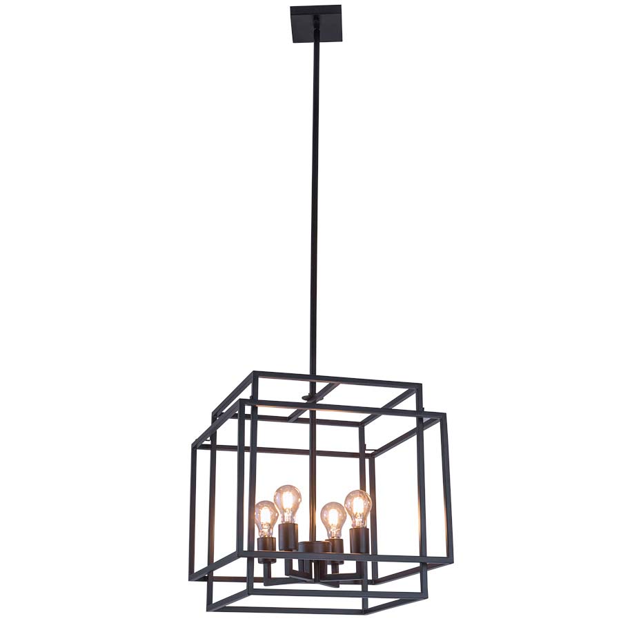 18"x18" Square Pottery Bronze Pendant, four medium base sockets, direct wired, 56.5" adjustable height, recommend four 7 watt Clear LED bulbs