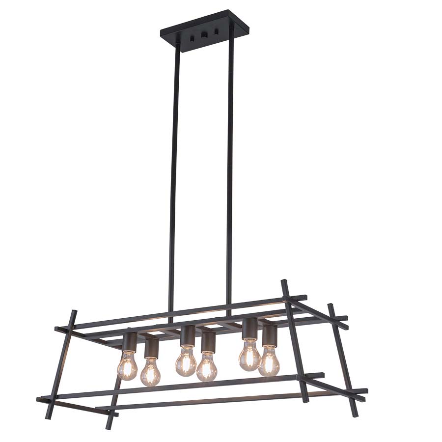 36"W x 14"D Rectangle Pottery Bronze Pendant, six medium base sockets, direct wired, 47.25" adjustable height, recommend six 7 watt Clear LED bulbs