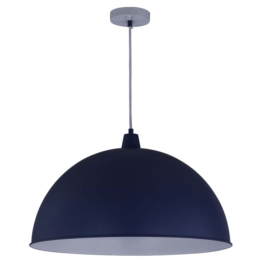 24" diameter Pendant with exterior to match SW9150 Endless Sea and interior to match RAL 9016 flat, "S" arm medium base socket, direct wired, white fabric cord, 24"W x 30"OAH, recommend two 1100 lumen LED bulbs