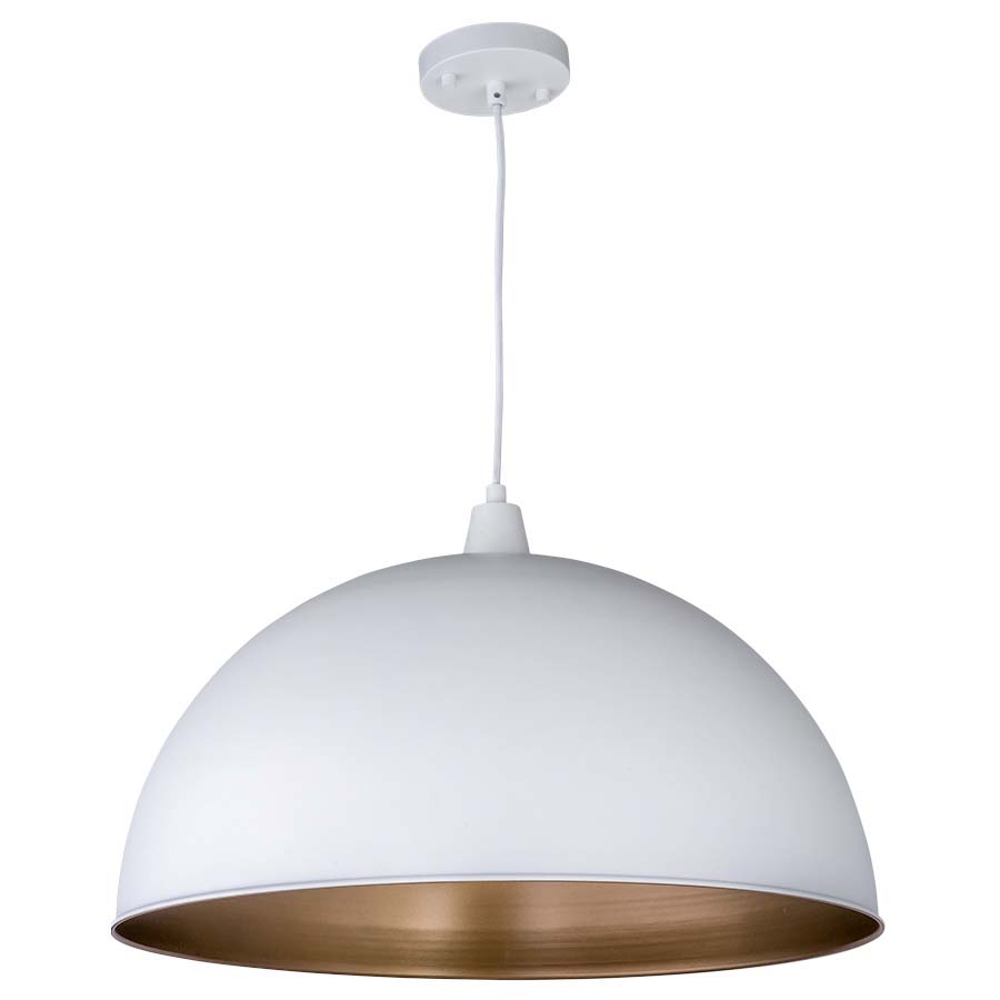 24" diameter Pendant with exterior to match RAL9016 and interior to match Painted Sungold, two medium base sockets, direct wired, white fabric cord, 24"W x 30"OAH, recommend two 1100 lumen LED bulbs