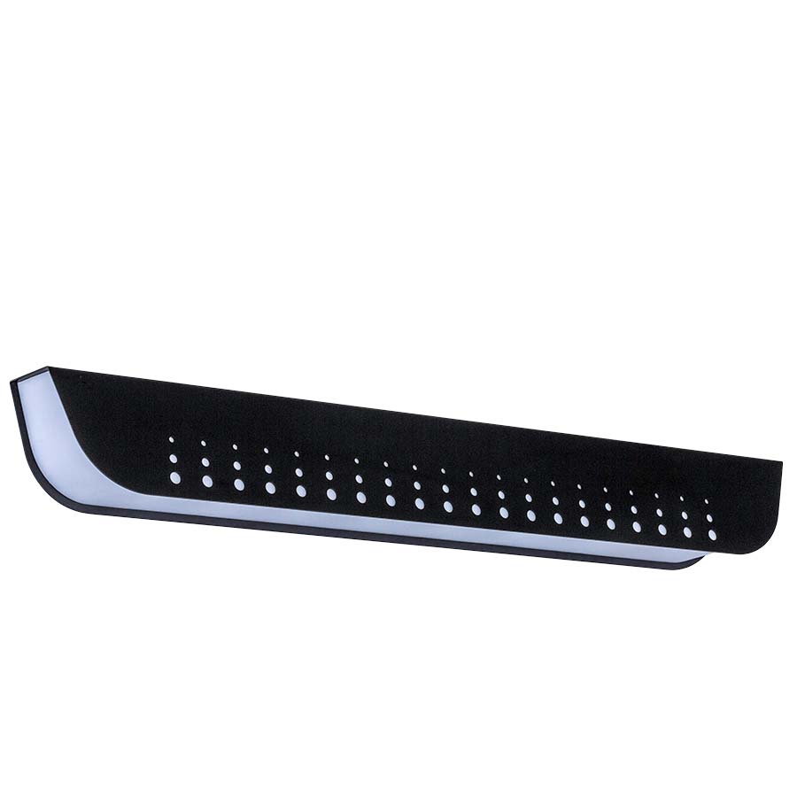 36" W Matte Black Integrated LED Pendant, 30 watt LED, 2400 lumen, 3000K, 90CRI, two adjustable nickel steel cables and silver cord hung, direct wired, with White Frosted Acrylic Diffuser