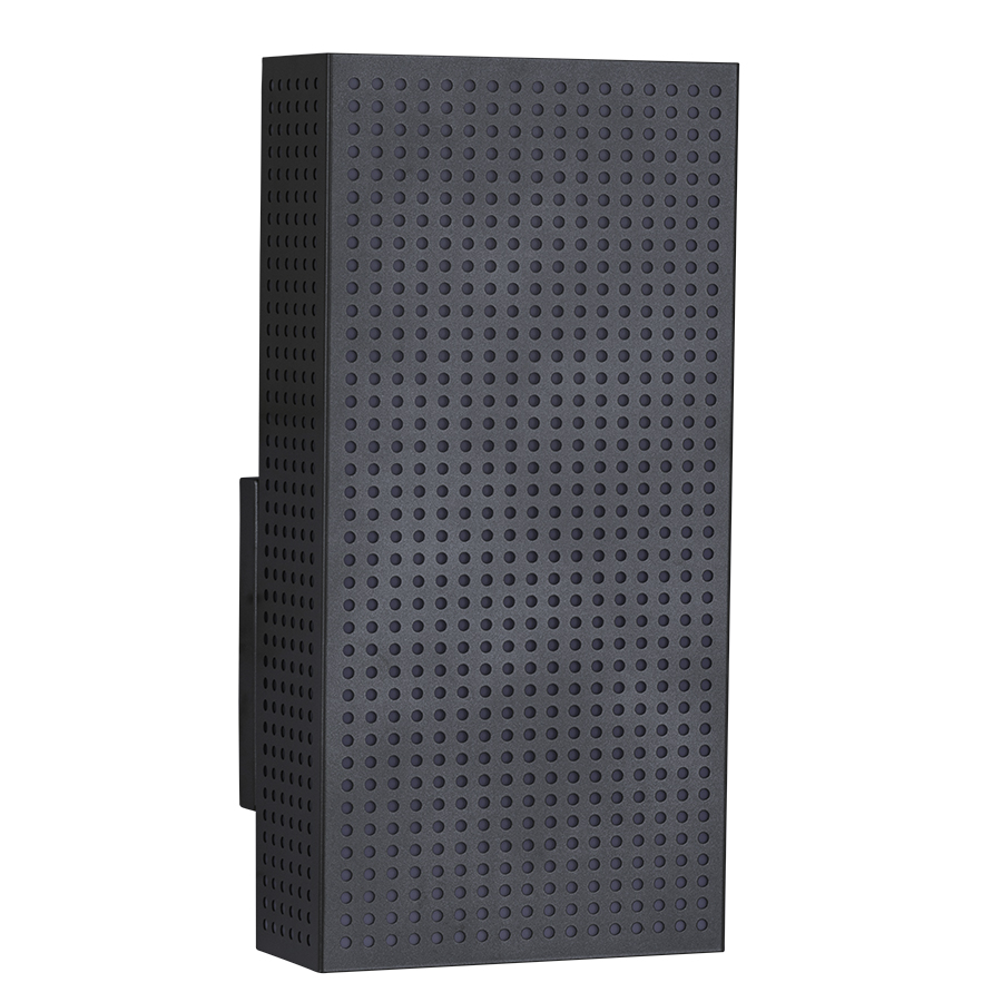 8"W x 16"H Stainless Steel Metal Mesh Wall Sconce, one medium base socket, direct wired, with Frosted White Acrylic diffuser behind metal screen. Recommend 1100 lumen LED bulb.